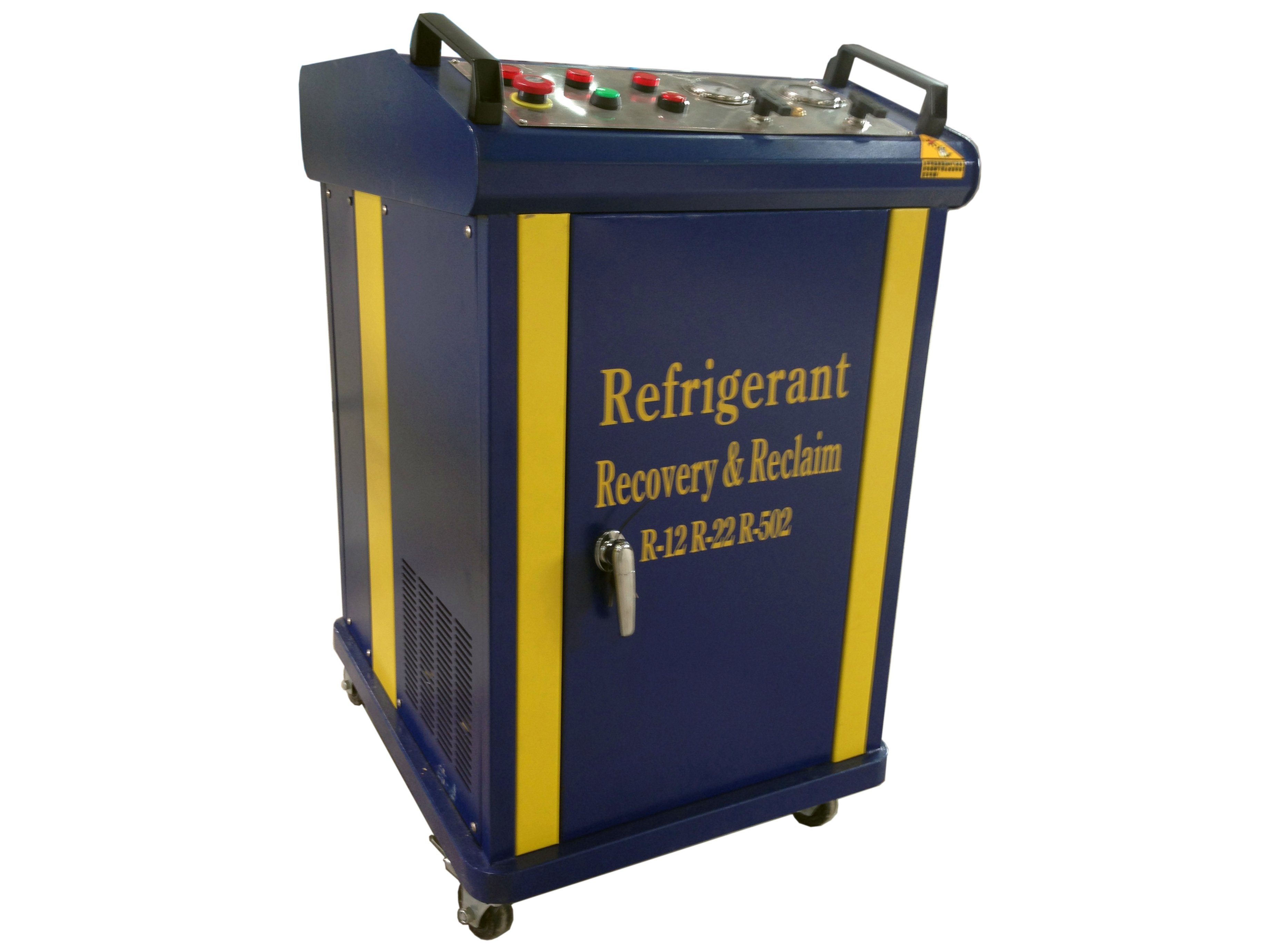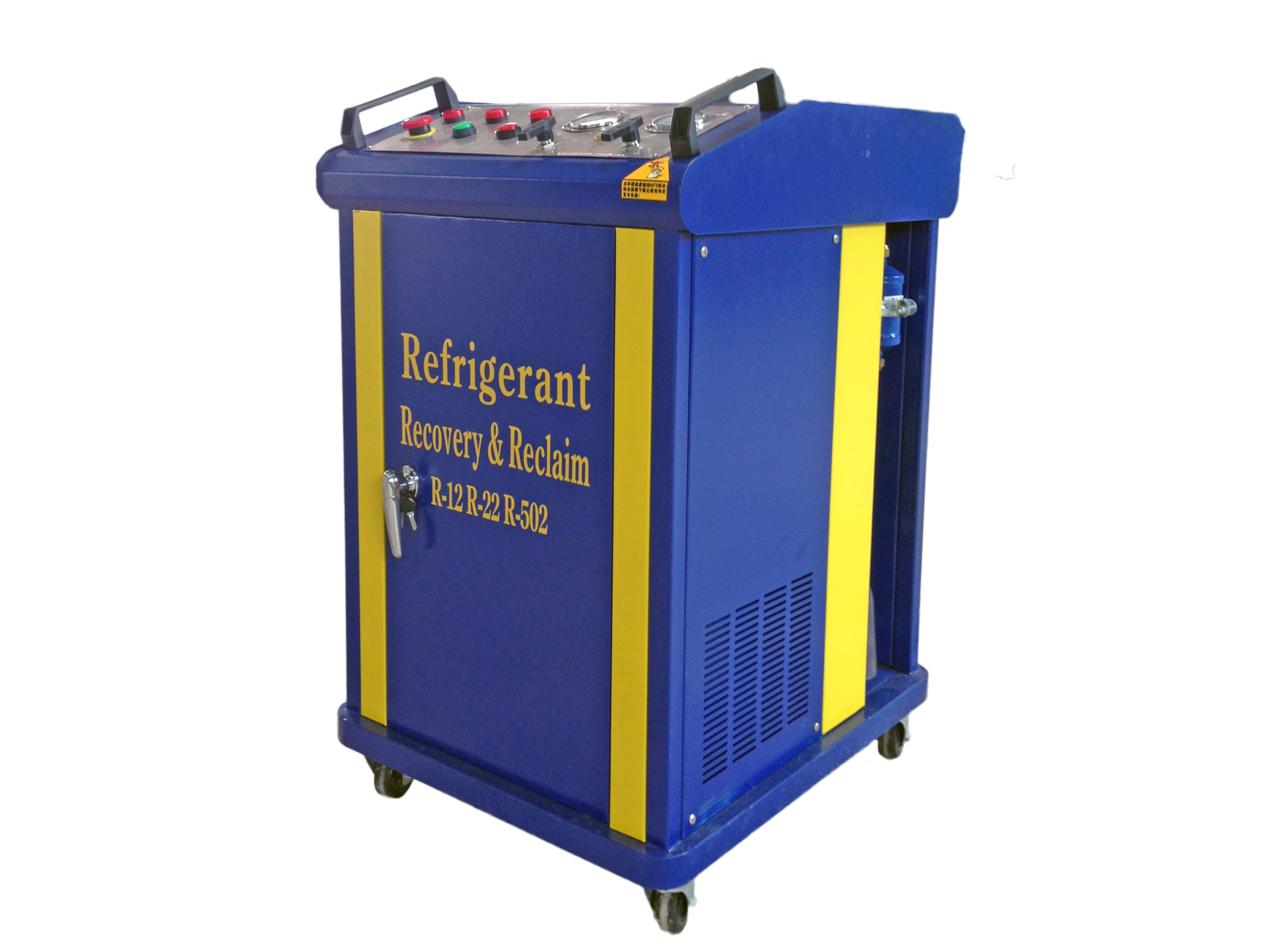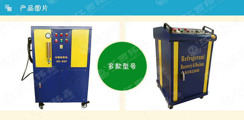 一種回收制冷劑的設備,用于回收制冷機械(冰箱、空調、冷柜等制冷機)中的制冷劑。回收的同時又對制冷劑進行一定的處理,如干燥、雜質的過濾、油分等,以便于制冷劑的二次利用。